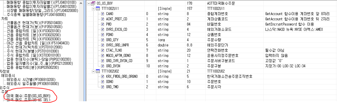 앞서 봤던 코드에서 tran_os_us_buy.SetSingleData로 데이터 세팅하는 부분이다.